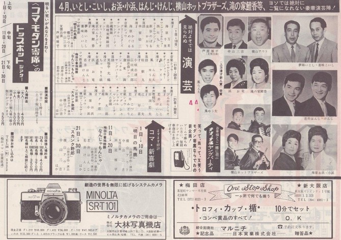 その角座では、かしまし娘・レッツゴー三匹・宮川左近ショー・笑福亭松鶴・桂春団治・松旭斎滉洋を看板に興行する寄席があった。