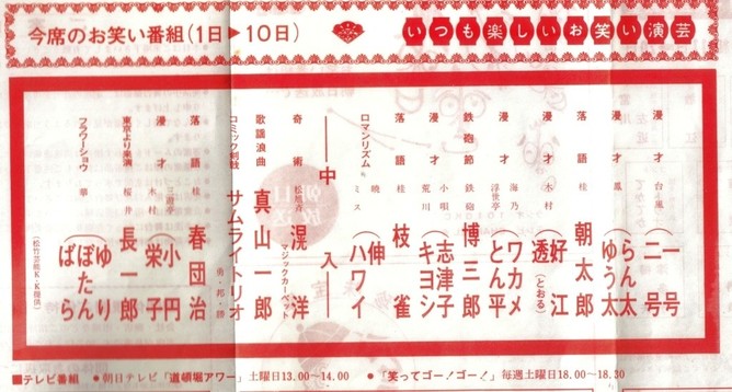 その角座では、かしまし娘・レッツゴー三匹・宮川左近ショー・笑福亭松鶴・桂春団治・松旭斎滉洋を看板に興行する寄席があった。